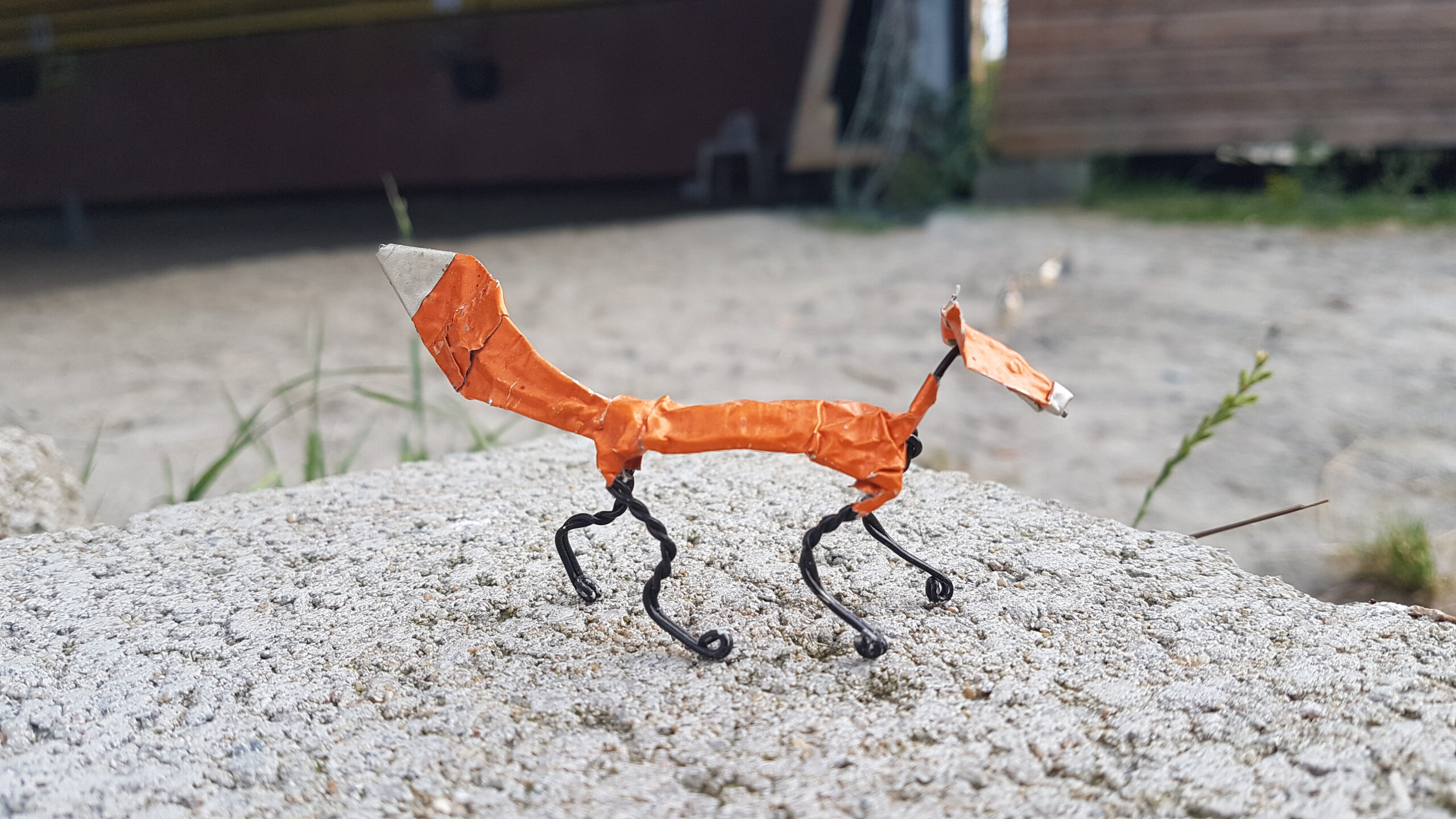 Les différents morceaux sont reliés entre eux avec du fil aluminium. Cela permettra de faire bouger le tout petit à petit pour faire une petite…