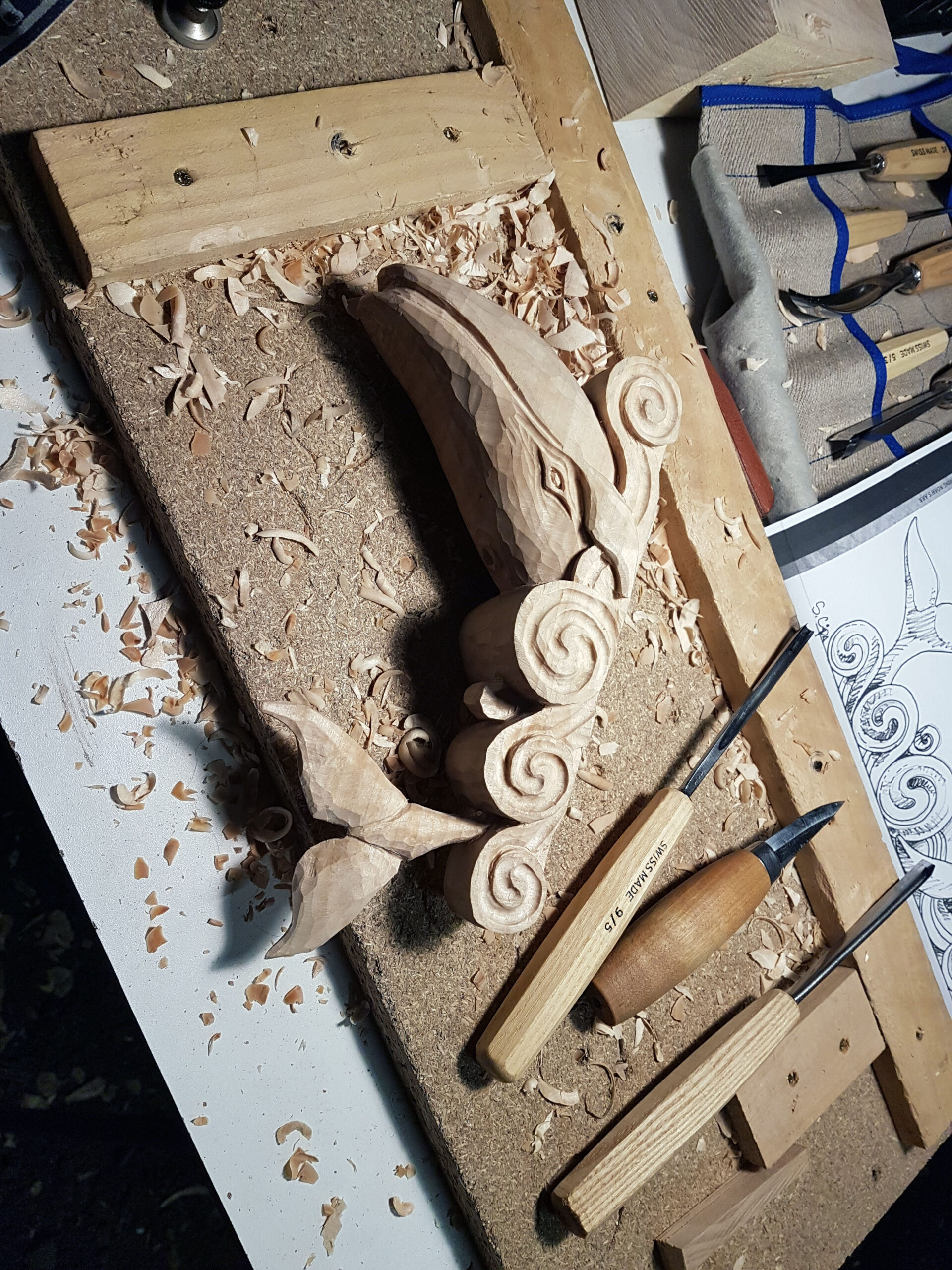 Sculptée dans du tilleul d’après un dessin de Shawn Cipa.